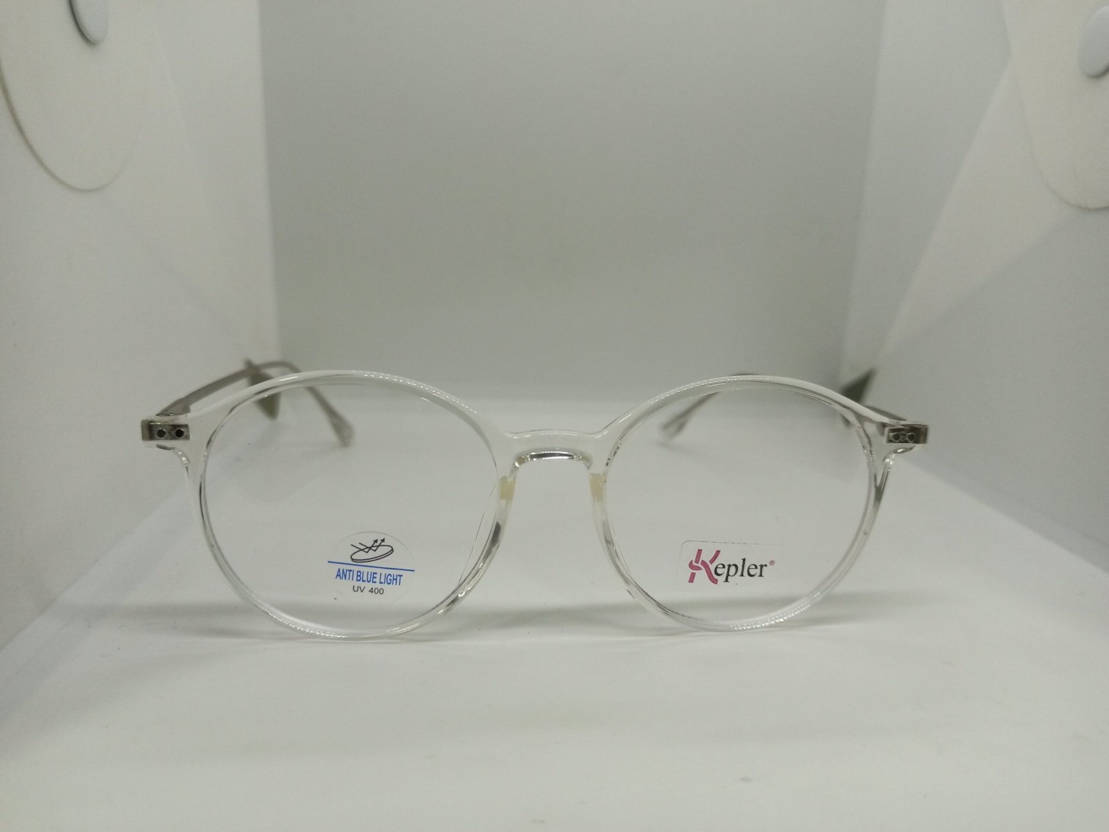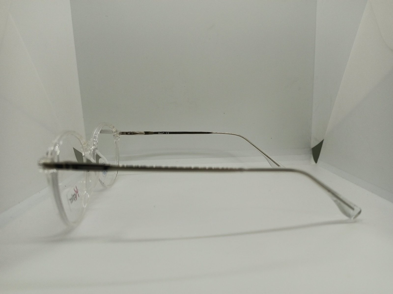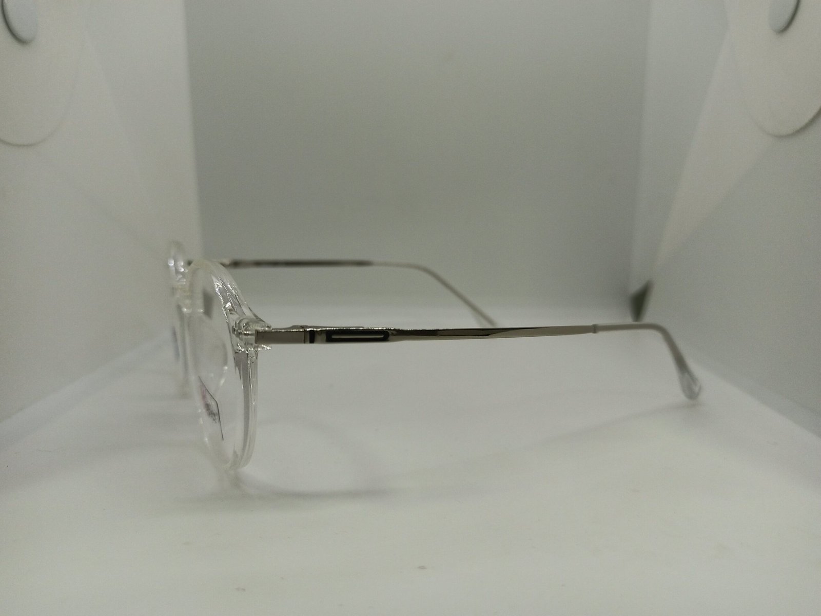 Armazón de mujer redondo y transparente con plateado.