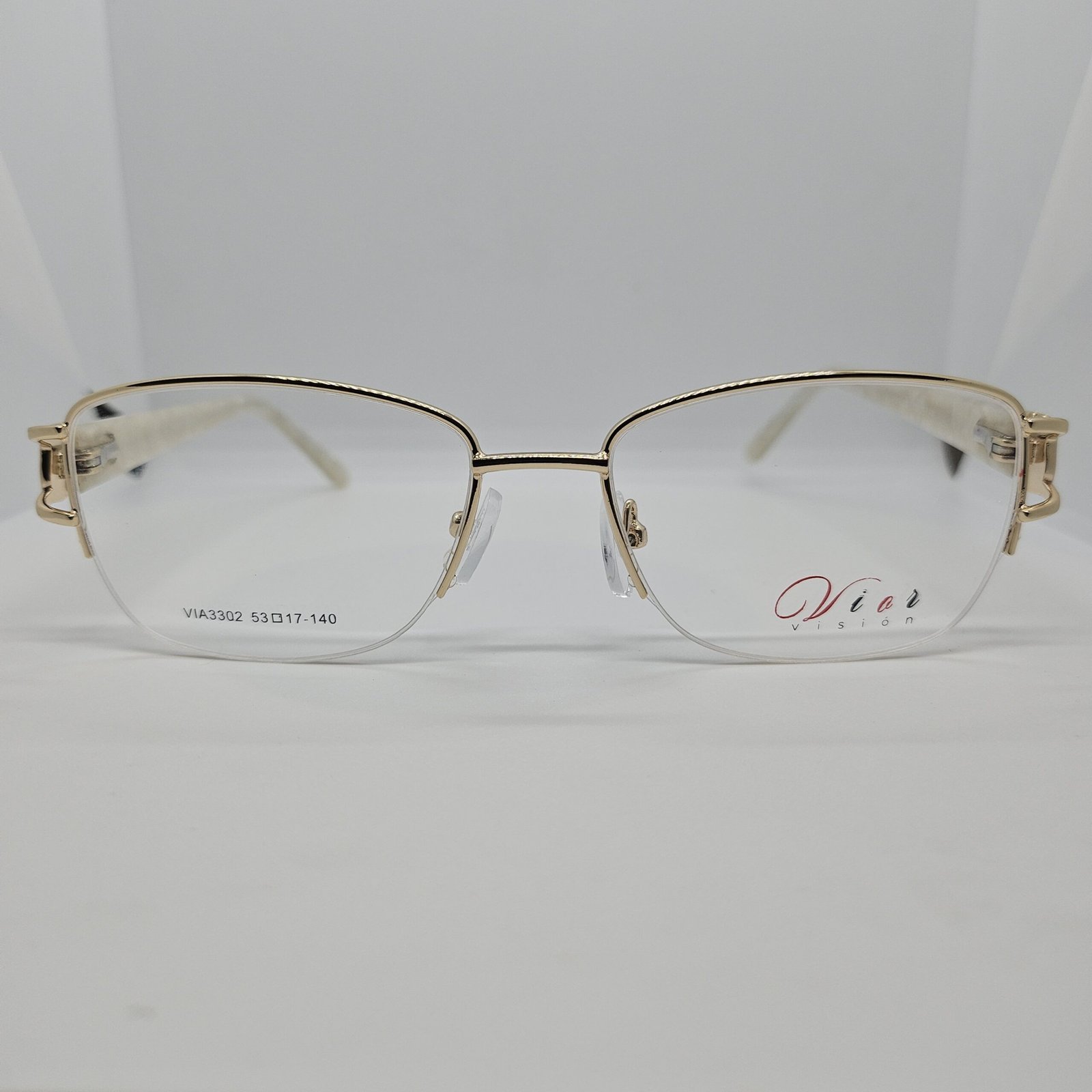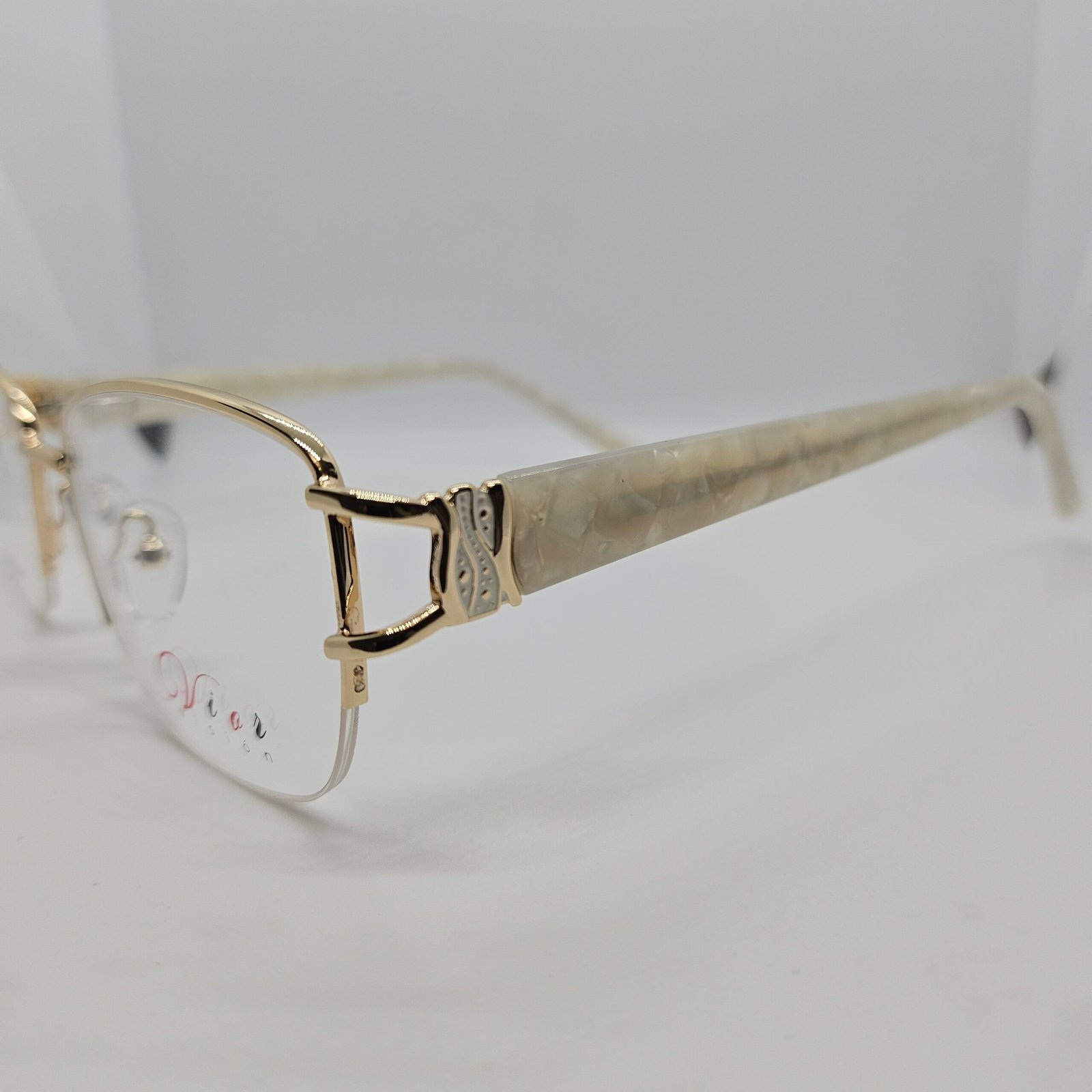 combinación perfecta entre el metálico dorado y acetato marmoleado blanco con detalles en las varillas.