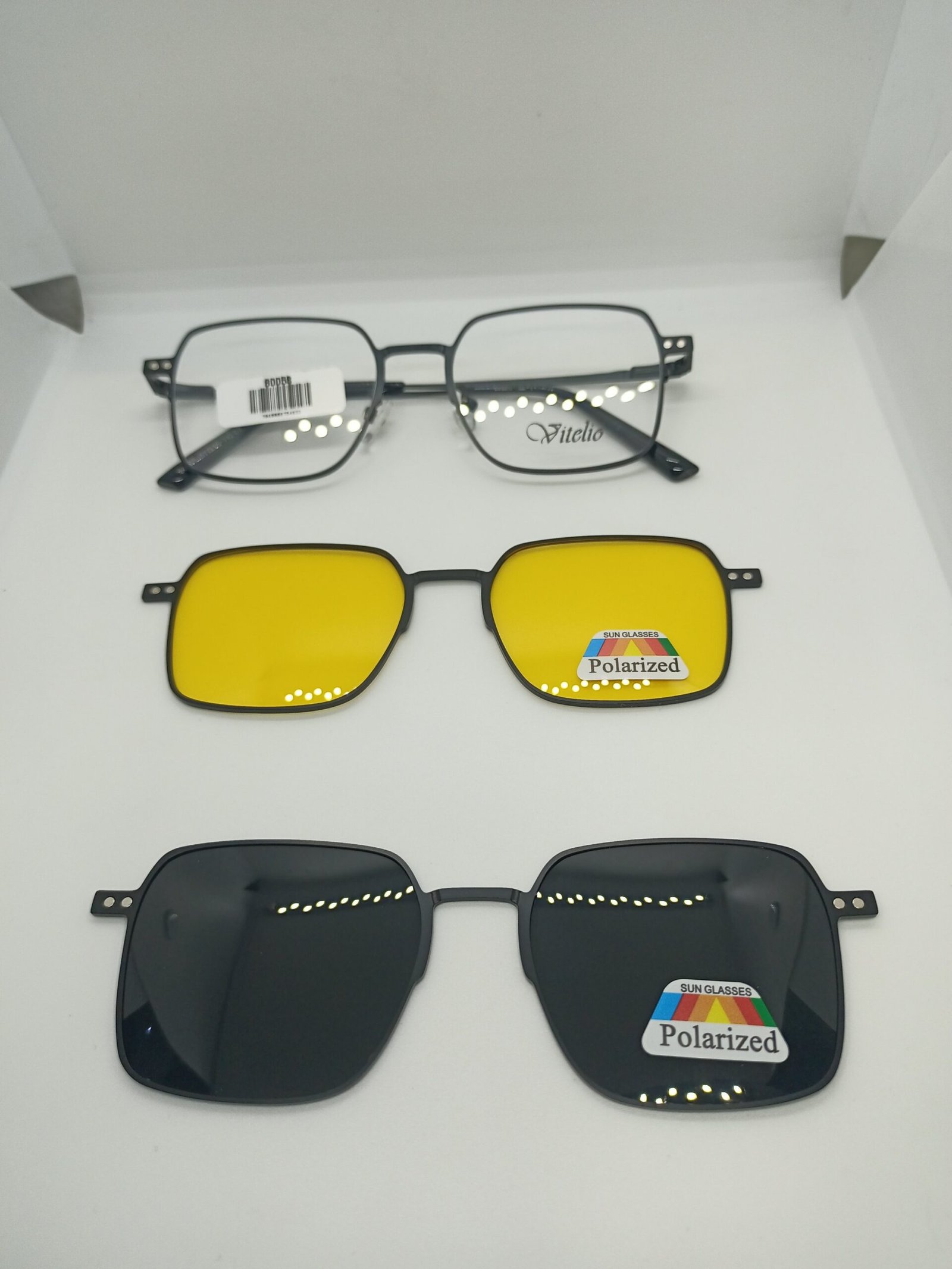 Armazón cuadrado Vitelio con doble clip (amarillo y negro).